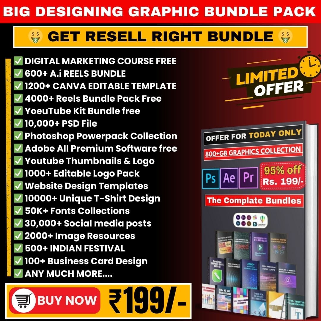 Save time & skip the hassle with our All-in-One Digital Products Bundle! Easily upload to your website in one click using our CSV file, covering all Your Marketing, Design, and Video Editing Needs.